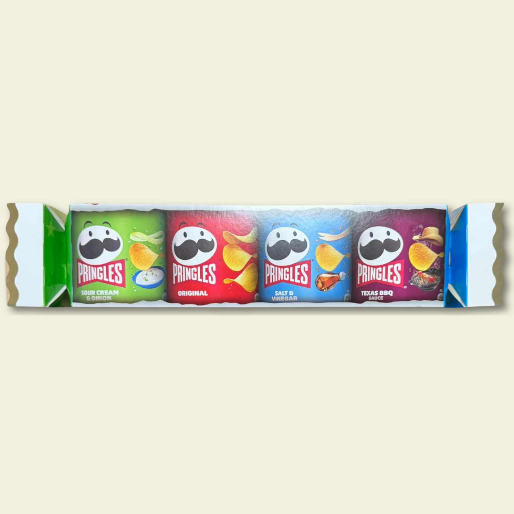 Make Christmas extra fun with this Pringles Christmas Cracker Gift Box, packed with 4 delicious snack pots in everyone’s favourite flavours. A festive twist on the classic crisp, this cracker-shaped box includes Sour Cream & Onion, Original, Salt & Vinegar, and Texas BBQ Sauce – perfect for sharing with family and friends during the holidays.